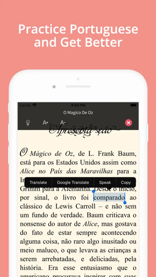This app has both. It will help you to learn Portuguese. It has 12 reading books in it. It will help you learn new Portuguese words. It is easy to use. Reading experience developed to be the best.
