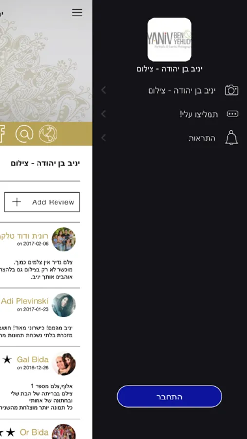 אפליקציית חתונה אישית של יניב בן יהודה - צילום מאפשרת לכם לראות את התמונות והסרטים שלכם, הכל בתפריט פשוט ונוח, הראו לחבריכם את הקטעים המרגשים מהחתונה שלכם בצורה פשוטה ונוחה