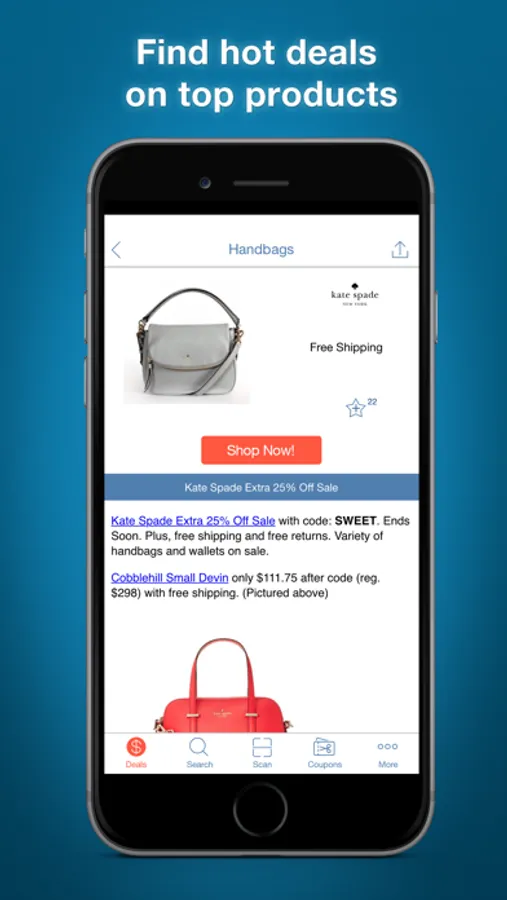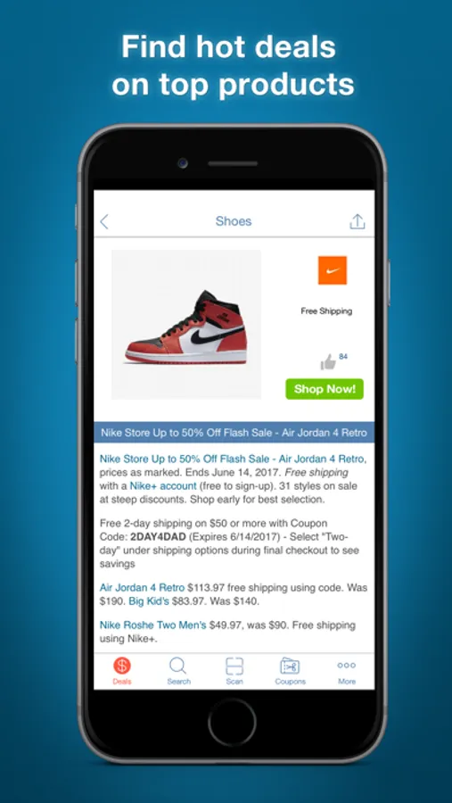 Set a shopping alert to receive a push notification or email when sales occur, whether the deal is online or local. (Excludes Amazon)