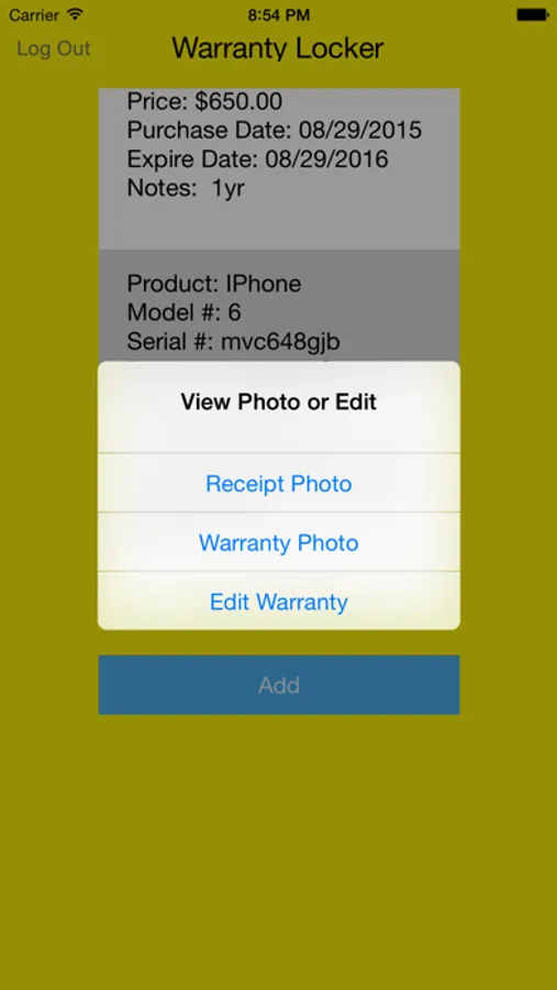 Warranty Locker makes it easy to store all your warranties in one place. No more spending hours trying to locate the paperwork. Have you ever just wanted a clean, simple, bare bones way to store all your warranties and important receipts. Well, with Warranty Locker you can. Add all your warranties and sort them by expiration date. Scan your receipts and warranties so locating them is easy. Easily delete expired warranties by left swiping or edit existing ones. Get alerts when warranties expire.
