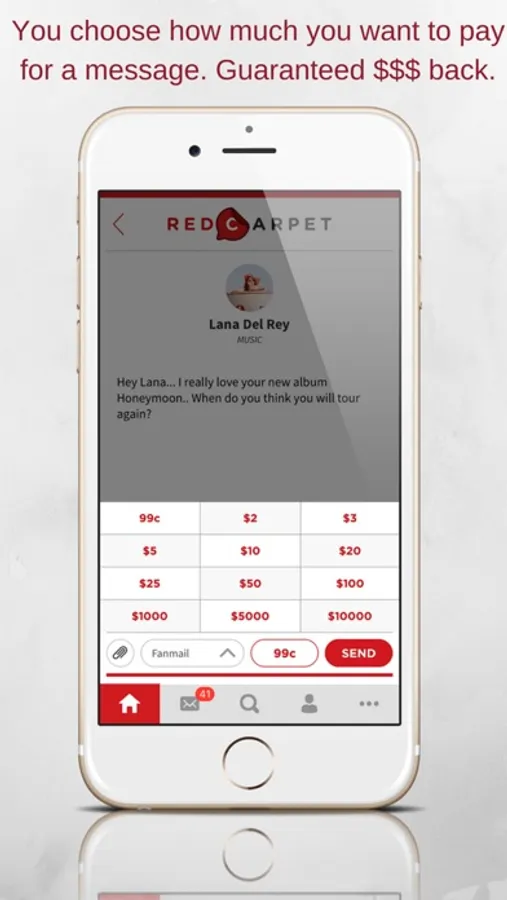 The Red Carpet app allows you to connect with celebrities for a nominated fee of your choice. Write a message and decide how much you want to pay. It stops trolling and it's that simple. Try it now.
