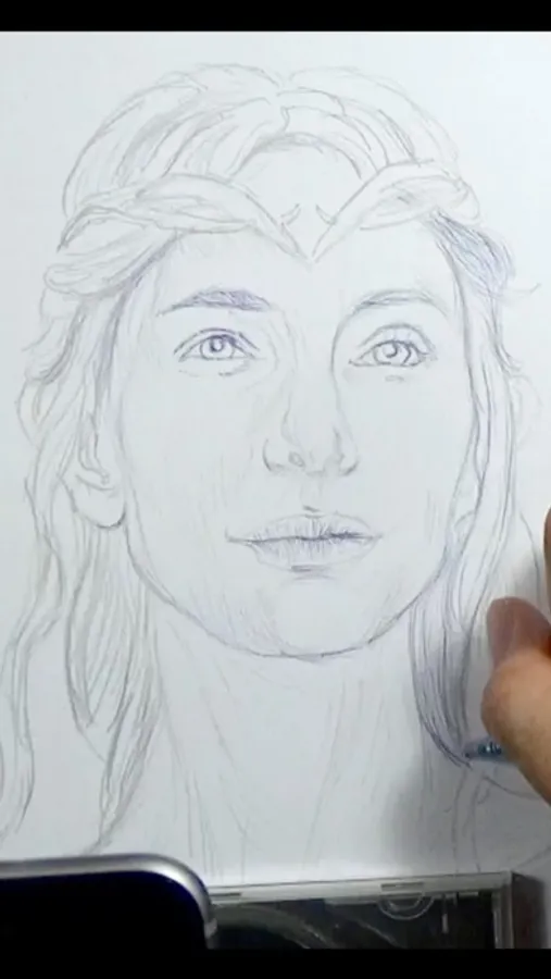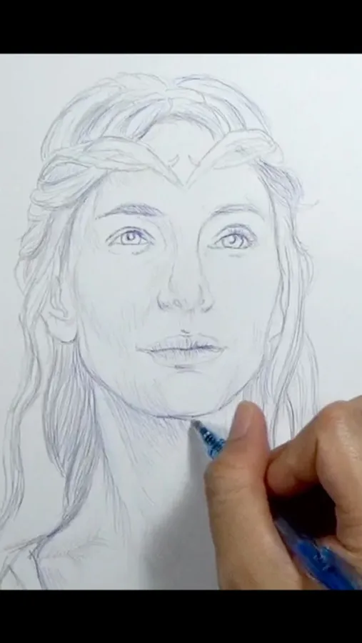 * A quick sketch of Galadriel (played by Cate Blanchett) from "The Lord Of The Rings" film series; done using Vermeer's Lens, a 2B pencil and blue ballpoint pen on an A4 printer paper.