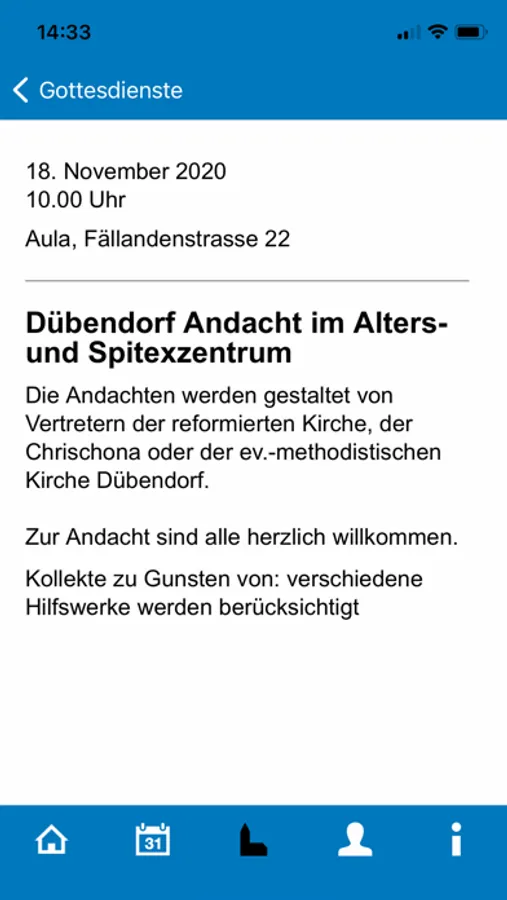 Reformierte Kirche Dübendorf-Schwerzenbach. Unsere Agenda sowie den Gottesdienstkalender und die Kontaktinfos immer aktuell auf ihrem Mobile Phone.