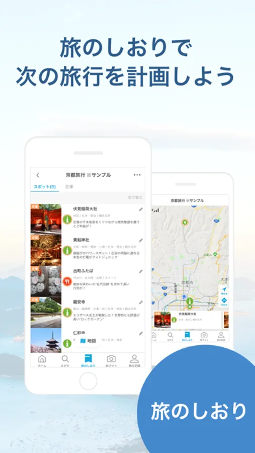読みたい記事や訪問予定のスポットを“しおり“に登録して地図でチェック!