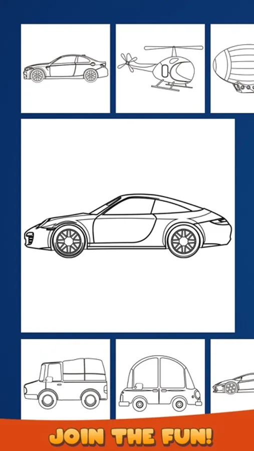 Discover the amazing world of the cars and the other vehicles. Color the best drawings of your favorite vehicles. An addictive game for all!
