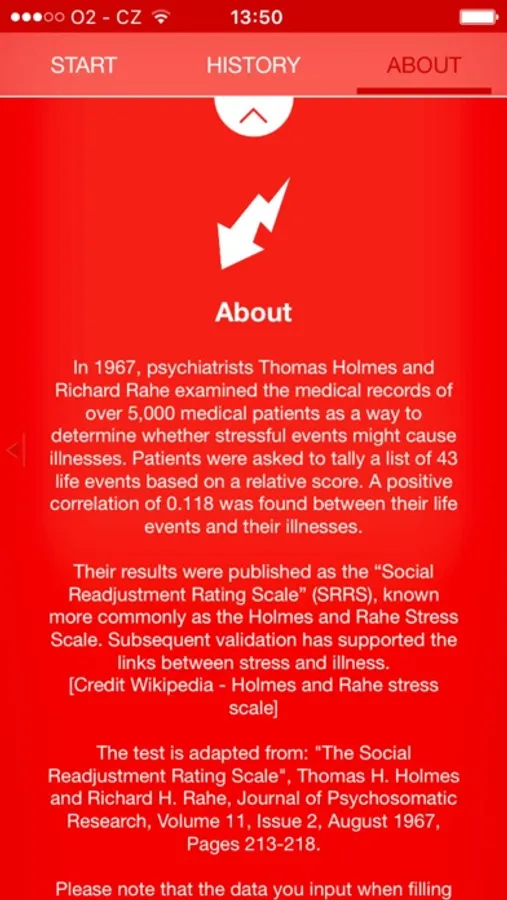 The test is adapted from: "The Social Readjustment Rating Scale", Thomas H. Holmes and Richard H. Rahe, Journal of Psychosomatic Research, Volume 11, Issue 2, August 1967, Pages 213-218.