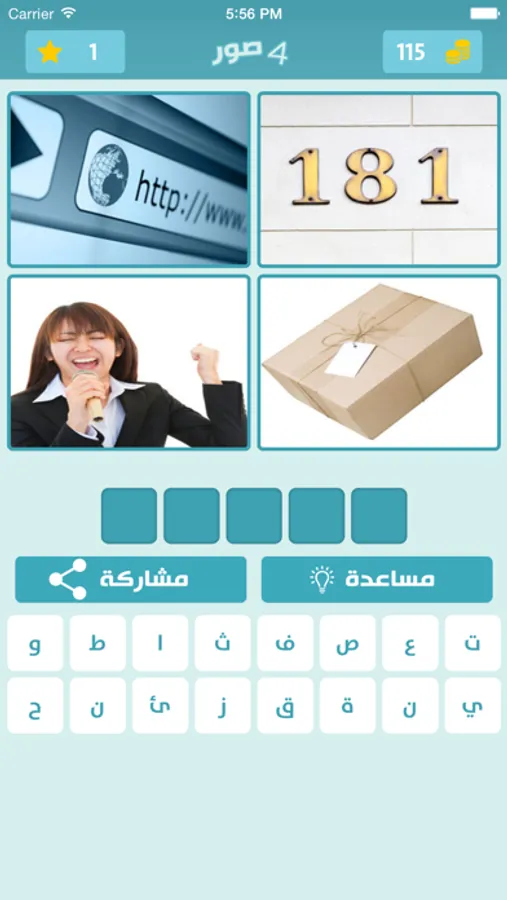 · إطلب المساعدة واكشف حرفاً أو قم بالعبور للمرحلة التالية