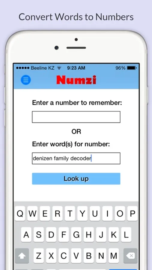 Numzi is a fun, handy word / number dictionary tool to help give your number-memory a boost. Never forget a number again!