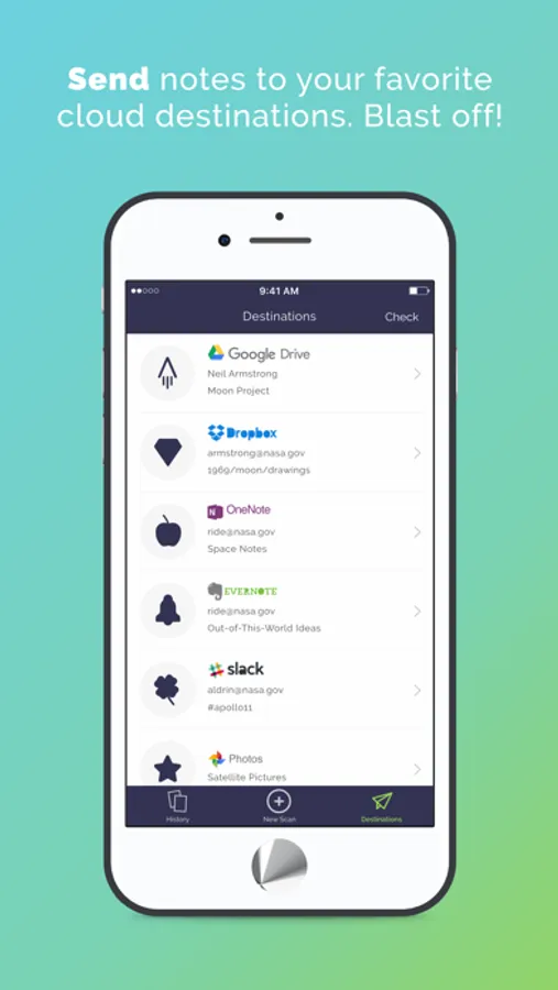 Enjoy the pleasure of writing and the efficiency, organization, and shareability of digitization. Write freely and use our shortcut system to send your scans as PDFs or JPEGs to specific locations in Google Drive, Dropbox, Trello, Evernote, Box, OneDrive, OneNote, Slack, iMessage, iCloud, and Email.