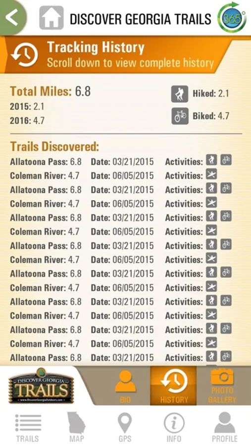 Hit the trail in Georgia with The Discover Georgia Trails Mobile App! Find information on hiking, biking and water trails throughout the state of Georgia. Use the customizable map for turn-by-turn directions to every trail.