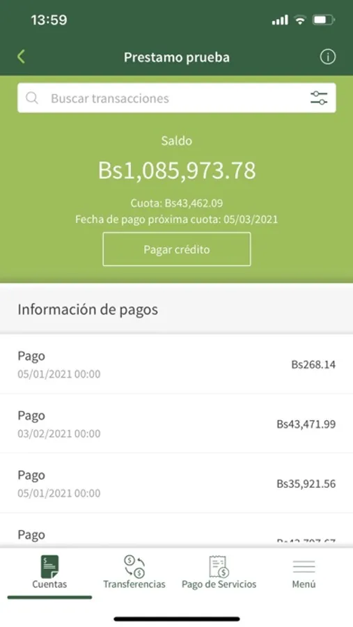 - Agendamiento de transferencias, pago de servicios y créditos.