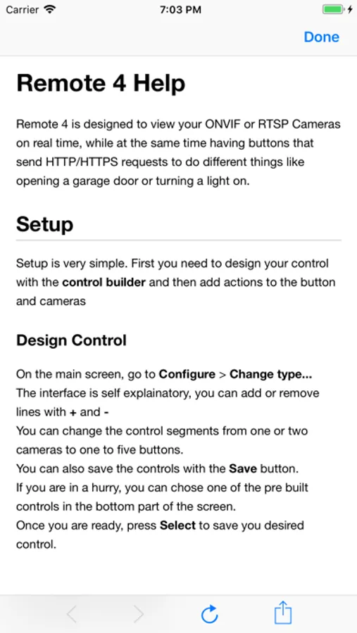 Remote 4 is designed to view your RTSP Cameras on real time, while at the same time having buttons that send HTTP/HTTPS requests to, for example, open a garage door or turn a light on.