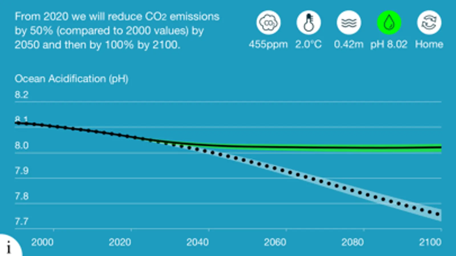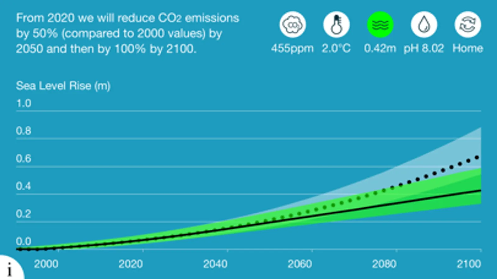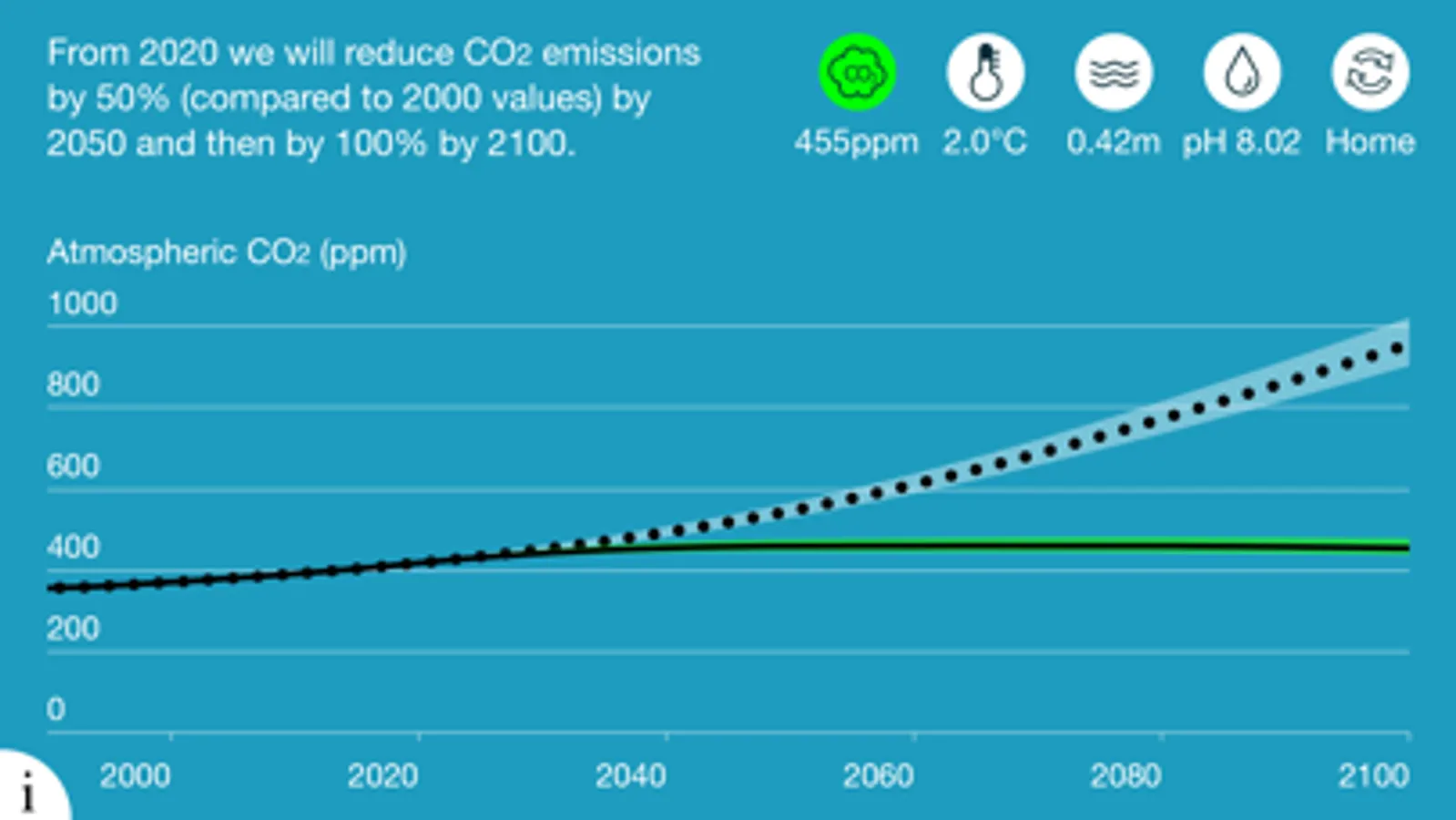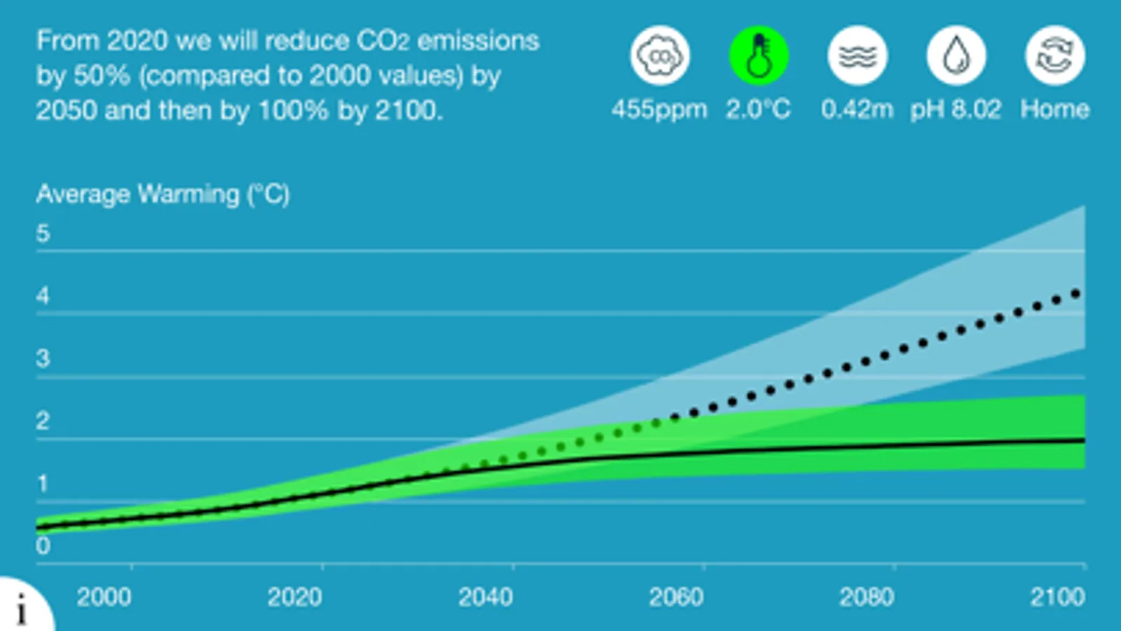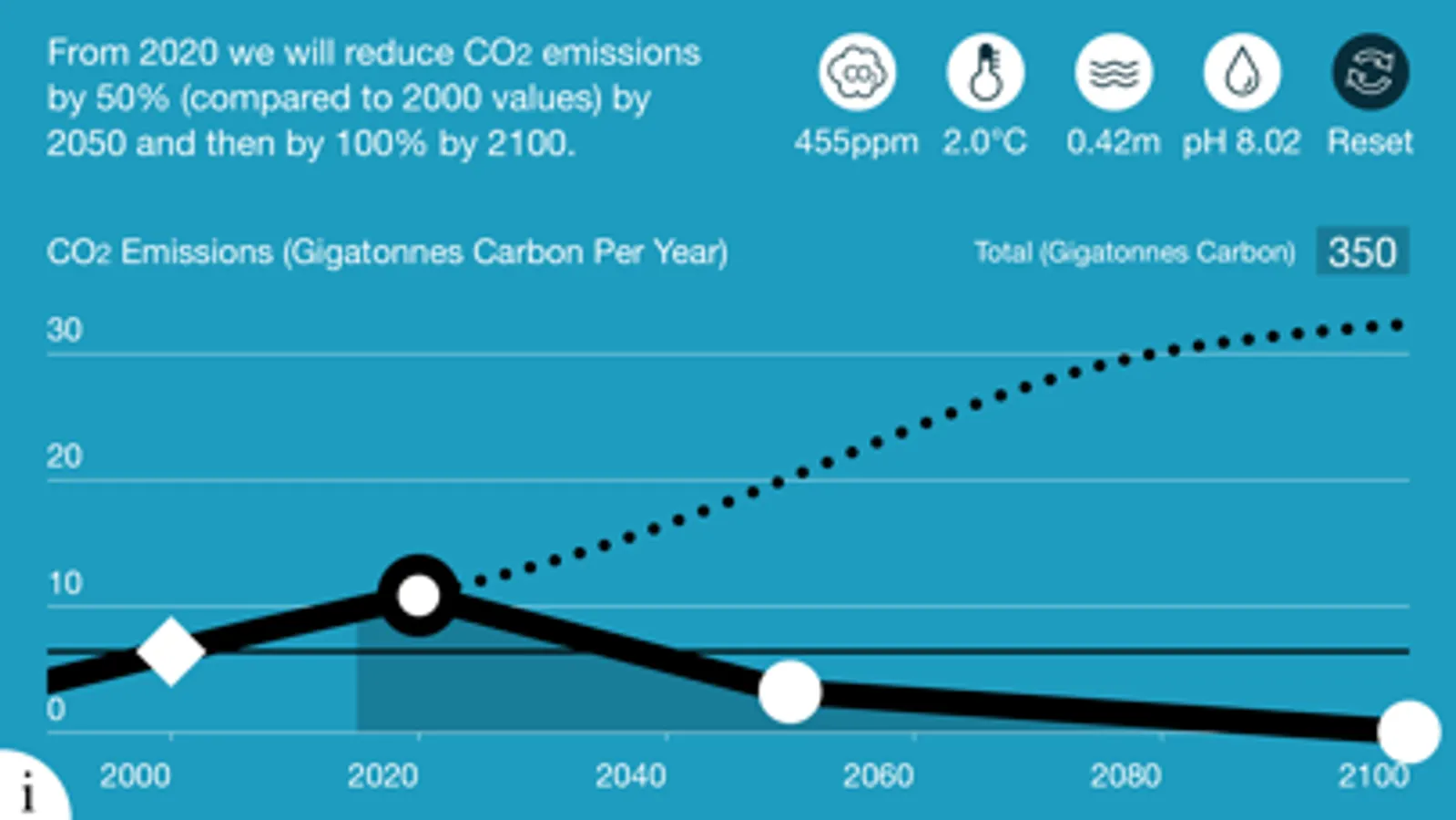 Model the effect of carbon emissions reductions on climate change using your smartphone or tablet.