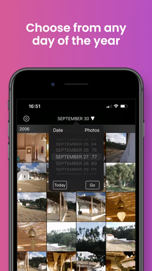 See all the Photos, Live Photos and Videos you took On This Day in history. A great way to relive your old Photos and Videos!