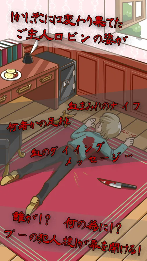 But when entering the room, in the room ransacked, the figure of her husband Robin lying on top of the bloody carpet ...