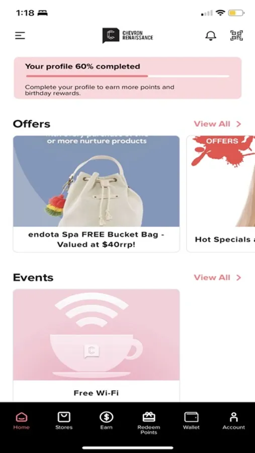 Using the Chevron Renaissance Shopping Centre app is easy. Create a quick profile to start accessing exclusive offers, competitions, and events now. When you see an offer, tap and present it to the participating shop to redeem it.