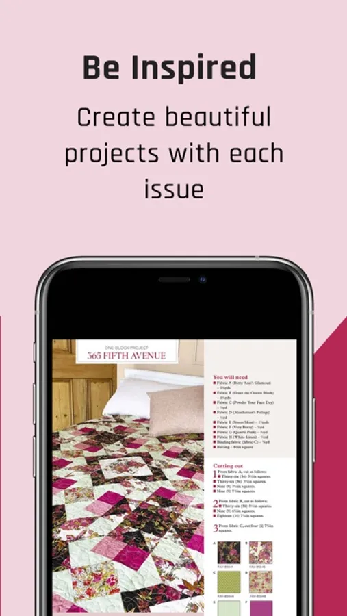 At the heart of Today’s Quilter are projects, created by the most well-known and talented designers. Exquisitely photographed quilts start inspired creativity, while expert technical features ensure quilters are always improving their skills for stunning results.