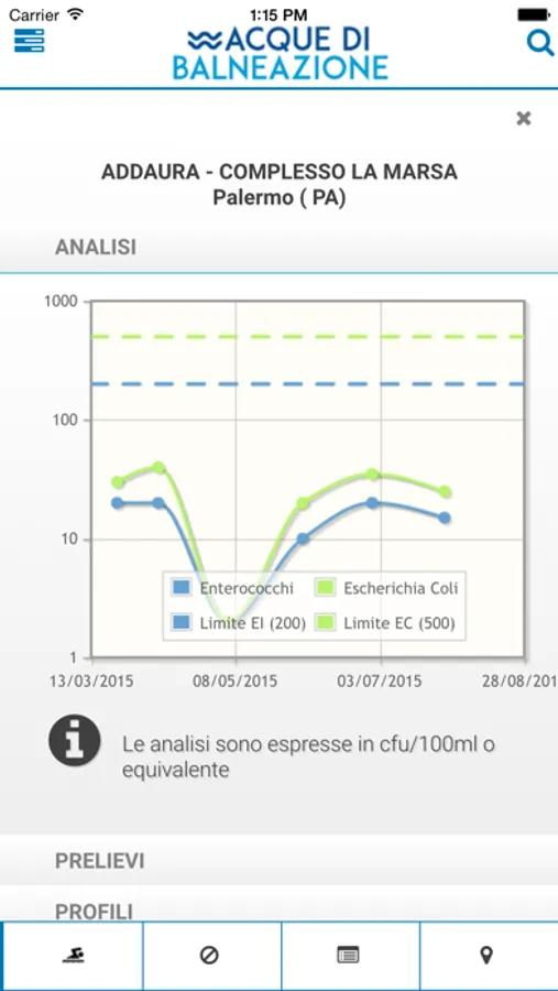 L'utente potrà verificare la balneabilità dell'area, eventuali divieti di balneazione, i risultati analitici del monitoraggio, le informazioni ambientali, eventuali criticità