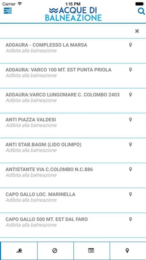 Attraverso l'app Portale Acque del Ministero della Salute, il cittadino potrà facilmente localizzare su una cartografia navigabile le aree di balneazione e consultare tutte le informazioni riguardanti la balneabilità delle stesse, aggiornate in tempo reale.