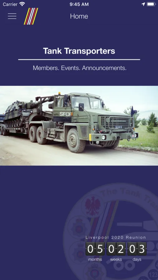 This Tank Transporters app allows the community of Tank Transporter Ex Service personnel and Serving Members of Her Majesty's British Army who are/were tank transporter driver/operatives of the RCT or RLC Squadrons based in Germany, UK or further afield to keep in touch with one another, and keep up to date with the latest group news and events.