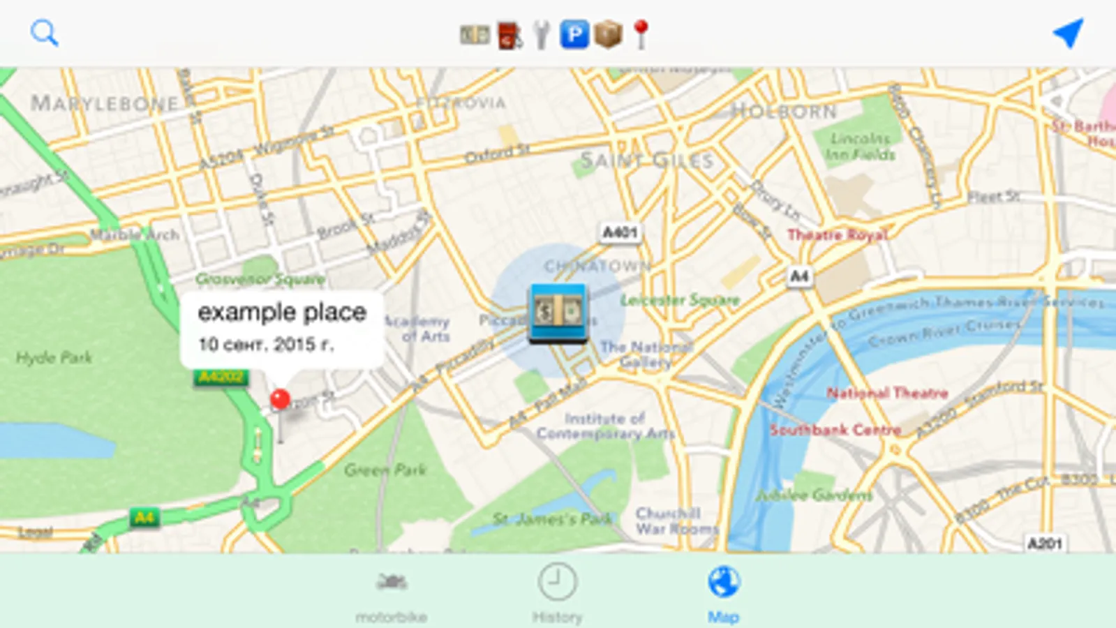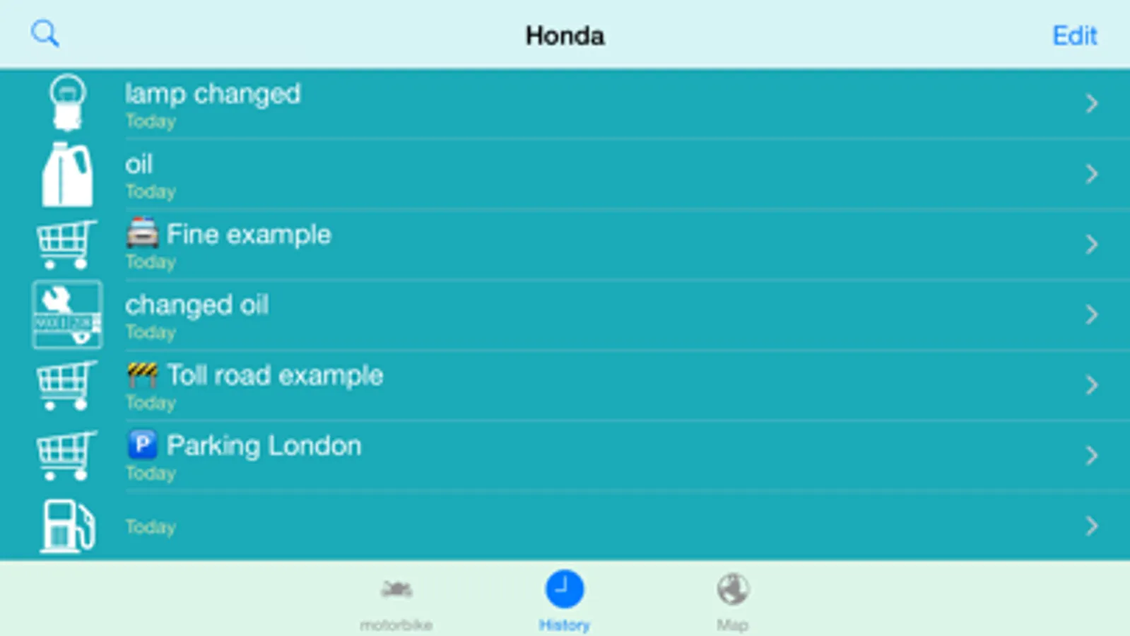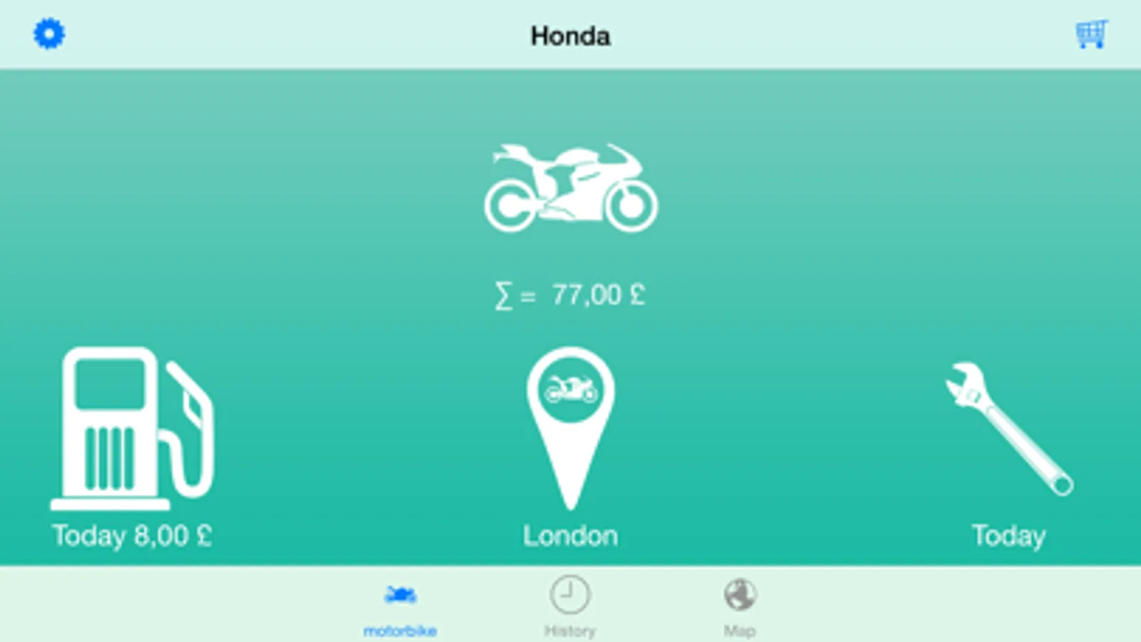 This is a simple and useful application for your motorbike. You can save any actions, including the cost, date and geographic coordinates. And then you can see this information in history, or on a map.
