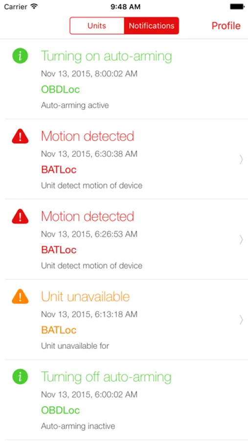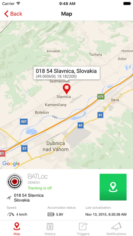 Application allows users to monitor and manage localization devices in GPSLoc solution as well as receive notification of events on the mobile device.