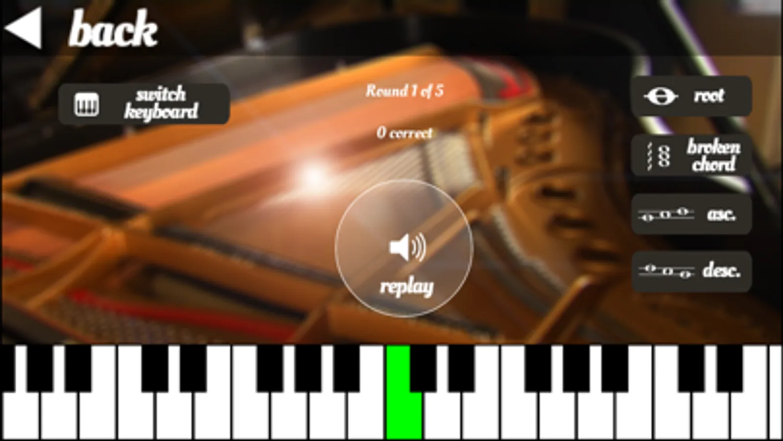* Assist your training with these features: Play root note / Play ascending set / Play descending set / Arpeggiate the chord / Replay the sequence or chord