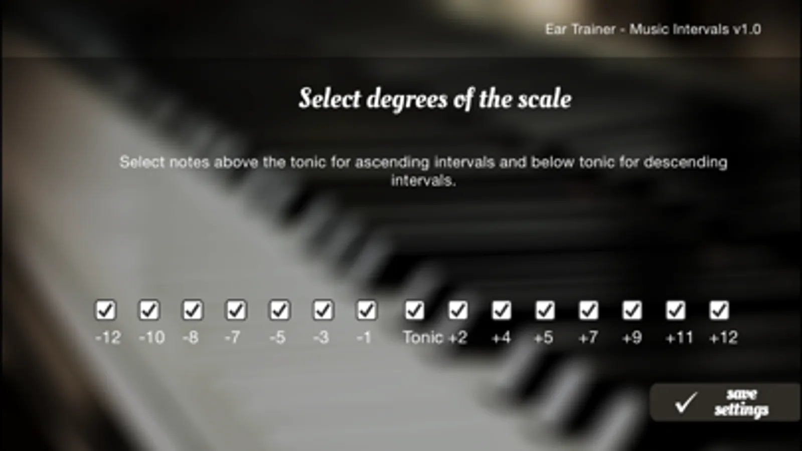 * Configure the scale & choose intervals up to an octave above or descending to an octave below