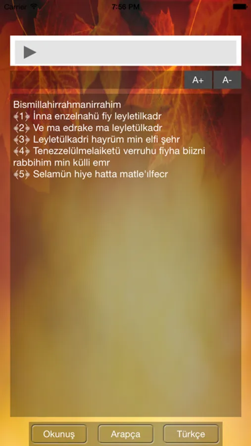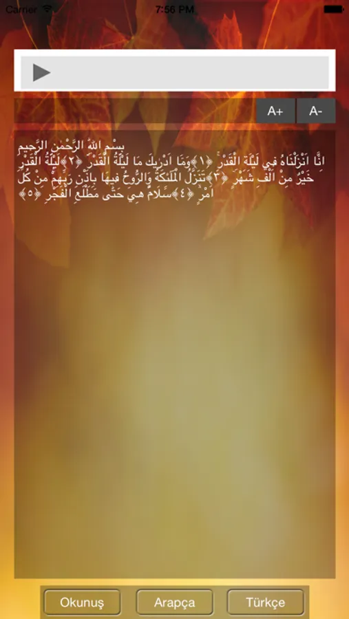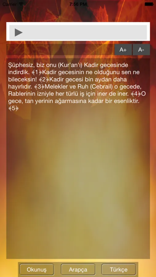 Kadir Suresi uygulamasında Türkçe okunuşunu, anlamını, Arapça yazılışını okuyabilir ve Arapçasını sesli olarak dinleyebilirsiniz.