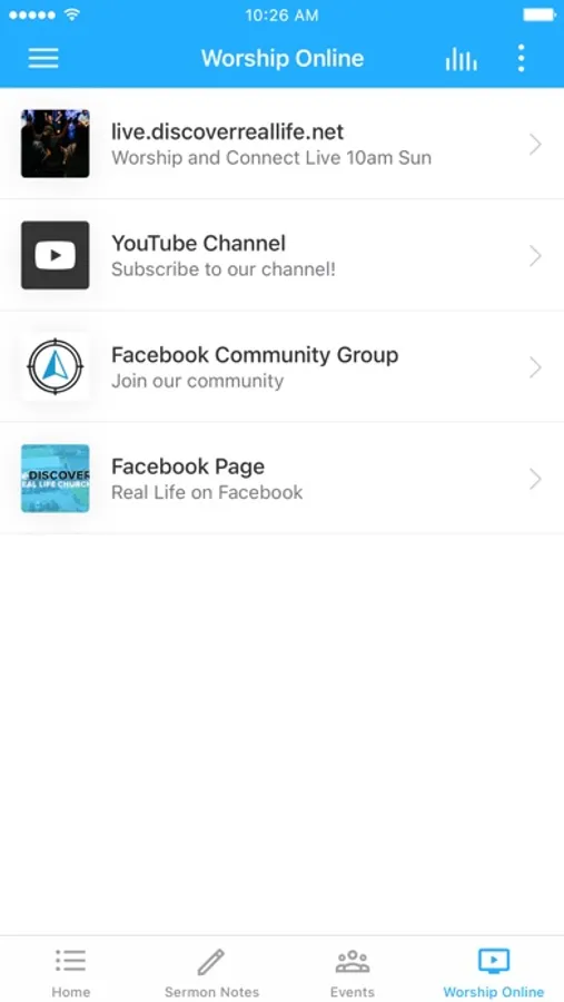 Real Life Church lets you explore the claims of Christianity at your own pace. Casual dress is cool, the message is relevant, and the people are friendly. Use the app for quick access to events, sermon notes, and past sermons.