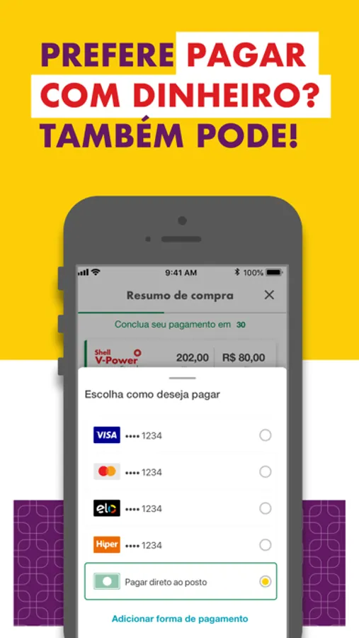 (1) Apenas abastecimento realizados até 20/3/2021 em postos Shell participantes serão válidos para juntar pontos e trocar por benefícios. Antes de abastecer, consulte postos Shell com pagamento disponível pelo Shell Box e regulamento da campanha dentro do aplicativo. A marca Shell é licenciada à Raízen Combustíveis S.A. A Apple Store e seus serviços de distribuição digital de aplicativos não possuem qualquer relação ou responsabilidade sobre as promoções realizadas no Shell Box.