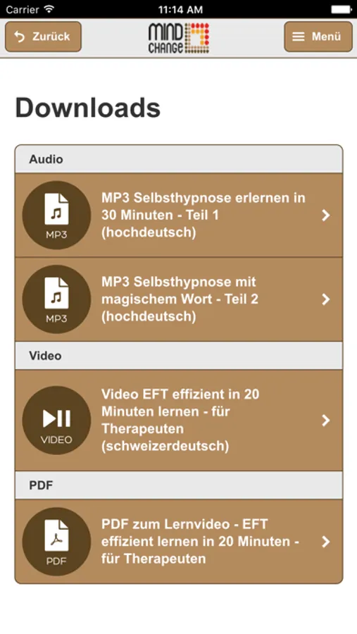- Gratis Download von Audio-, Video- und PDF-Inhalten