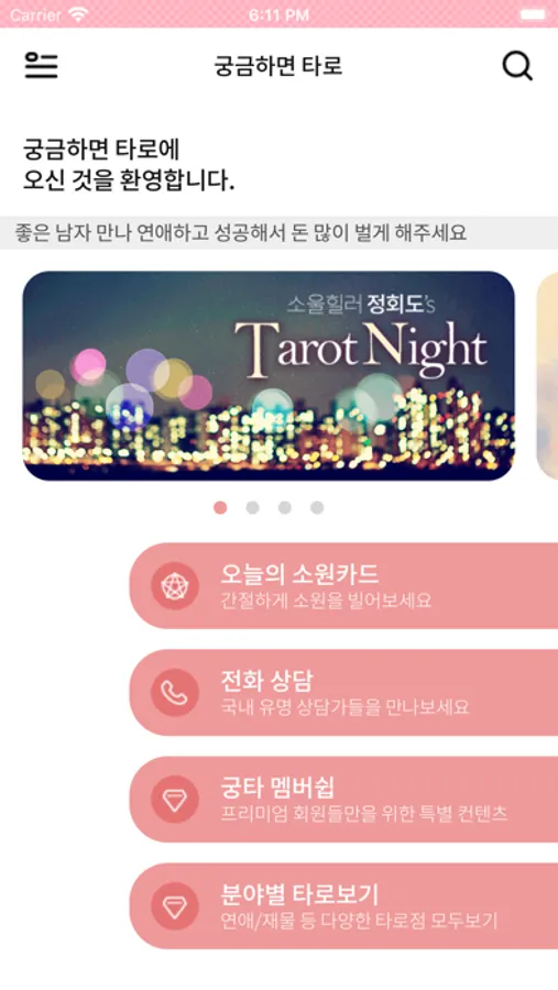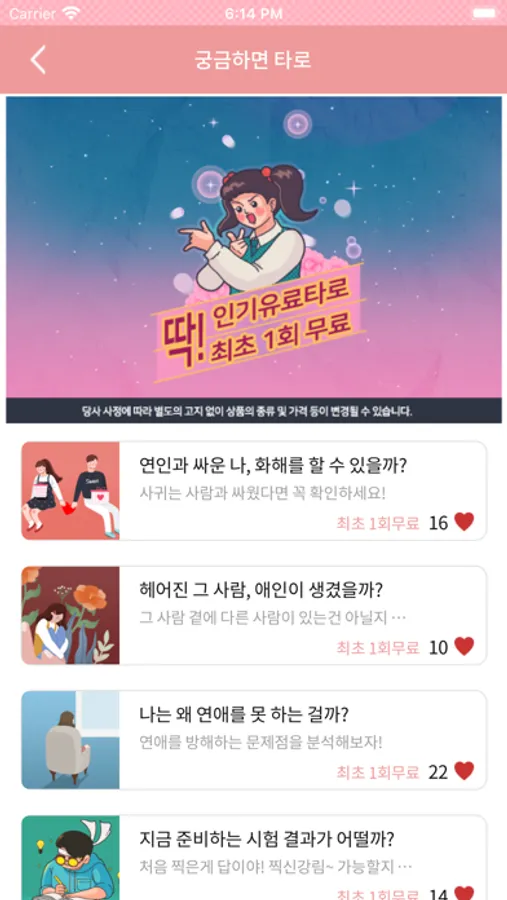 - 다양한 종류의 타로(타로카드, 타로점,타로운세) 컨텐츠를 무료로 즐기세요.