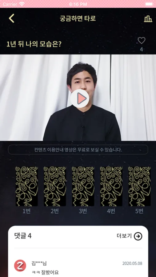 좀 더 생동감 있게 타로를 보실 수 있도록 영상 타로를 추가되고