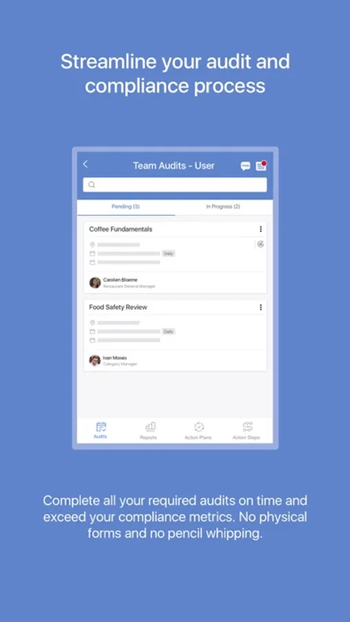 Intelligent Audits in the cloud –Prebuilt audit forms that helps you cut the audit times in half while ensuring you meet or exceed your compliance metrics. No more physical forms, no more pencil whipping.