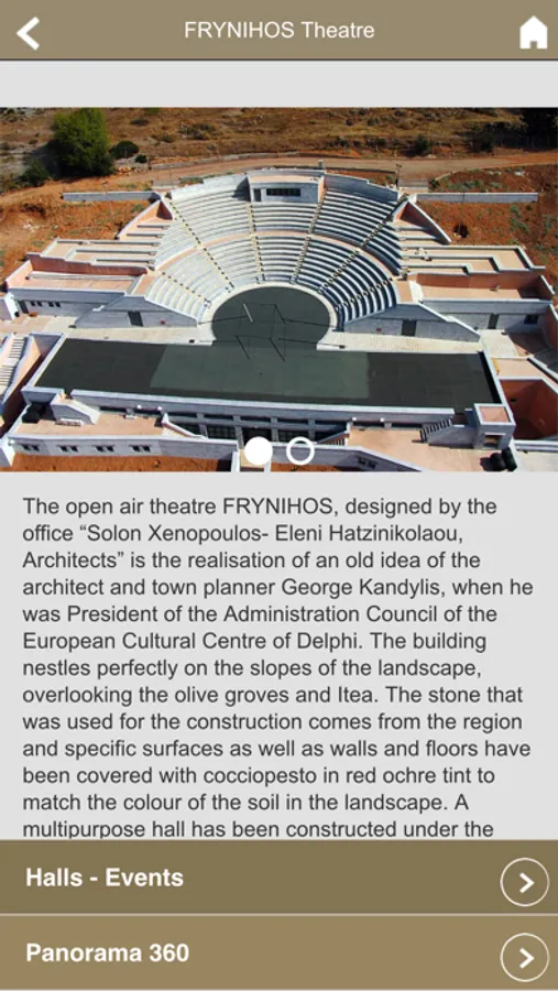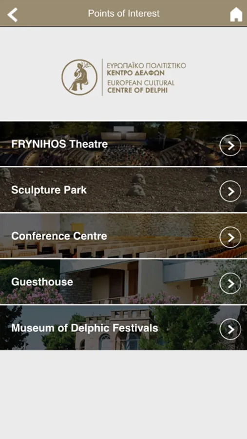 Download the application and enjoy a virtual tour of two unique sites where nature, art and human activity coexist in harmony: the conference venue of the European Cultural Centre of Delphi and the Museum of Delphic Festivals.