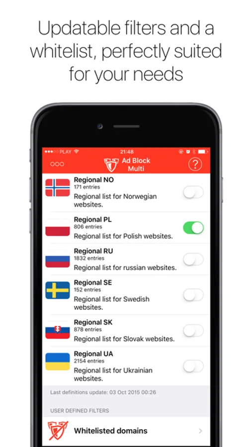 Our aim is to make the app the most powerful ad blocking solution on the App Store. If you would need any specific filter to be added or updated, we are always eager to get the feedback from you. Just tap "Learn more..." button in the app and drop us a line!