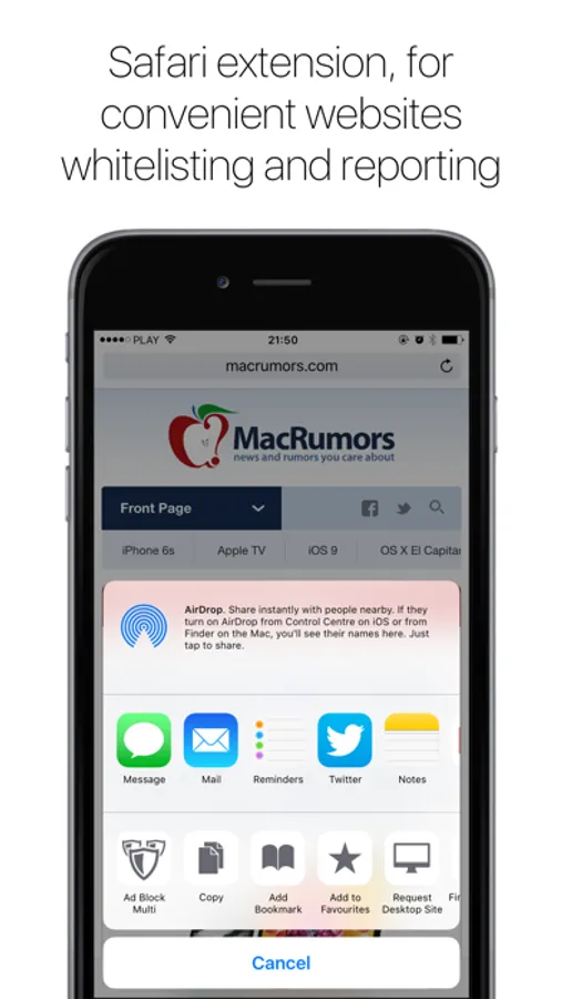 ◉ "Ad Block-Multi is a great buy. It offers a lot of features for the casual user who wants to focus on being able to use the internet as he or she would like, without having to worry about fine-tuning each site" - Community review on MacRumors.com (Sep 2015)