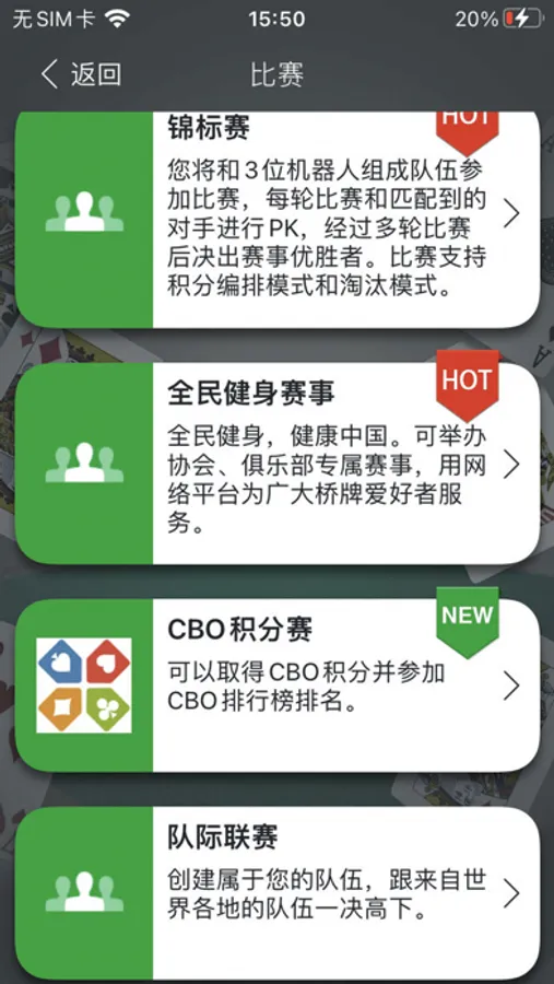 中国桥牌在线是一款高水平、玩法新颖的在线桥牌竞技App。来自全国各地的桥牌爱好者可以通过中国桥牌在线同场竞技,切磋桥技。