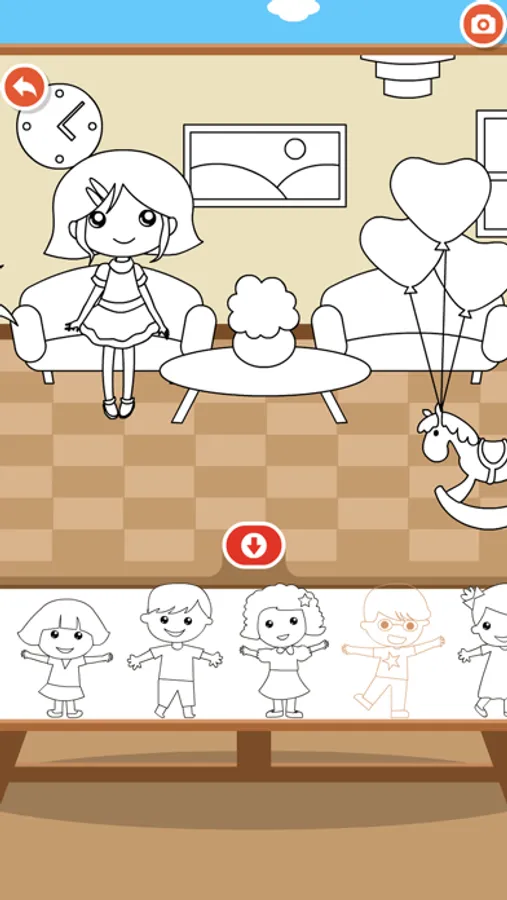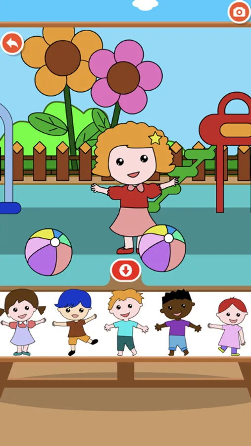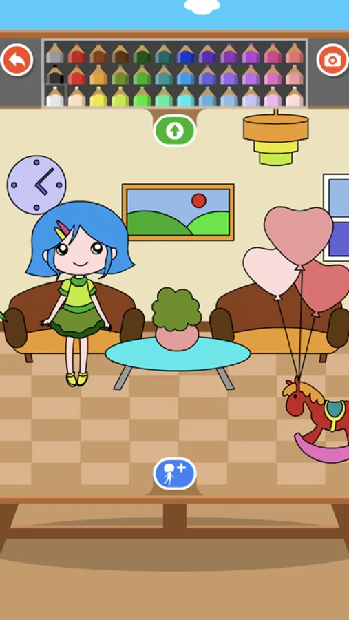 Swipe the scene left and right, choose the color of the upper palette, you can change the color of objects and characters arbitrarily;