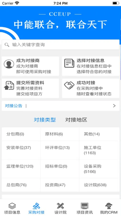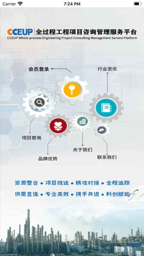 “中能联合”移动app是北京中能联合工程技术有限公司旗下全新便捷的移动端服务平台。中能联合是专业为能源、石油、化工、冶金、矿山、电力、环保、纺织、机械、建材等行业提供工程设计、规划、设备采购、工程项目咨询及研究,并致力于协助国内外企业开拓国内国际市场的专业性咨询公司。将全国工业工程项目信息进行收集整理,为客户提供全面的工程项目咨询服务。