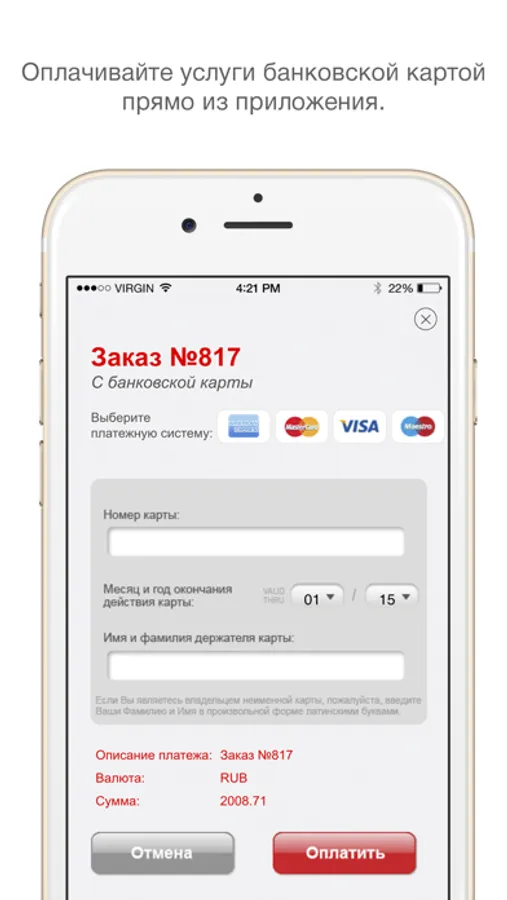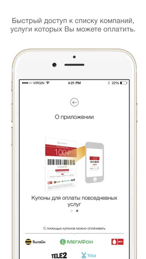 Список доступных товаров/услуг в приложении будет расширяться.