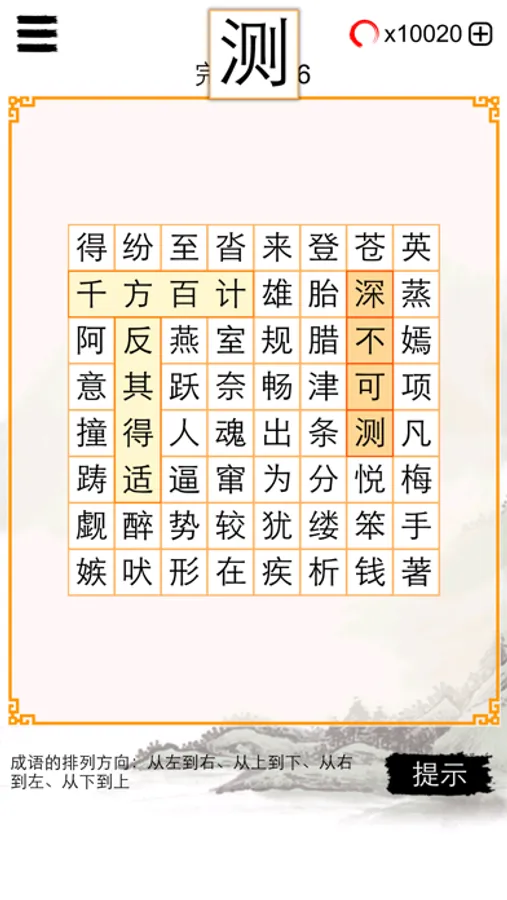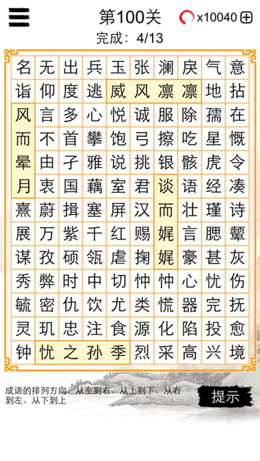 汉字表格中藏着许多成语,你能发现它们吗?找到就用手指划出来。