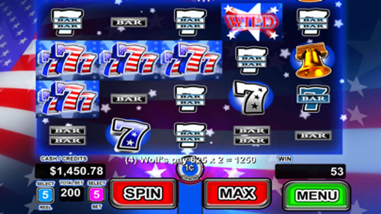 American Seven's is a Liberty themed, 5x4 Video Slot Game featuring bet-able reels that allows over 1000 ways to pay. This game, as well as all of our games are strictly "for fun only" and simulate a real slot machine experience.