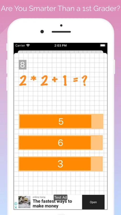 This is a crazy math game which questions are combined with 3 mathematical operations. There is 3 seconds countdown timer which makes things difficult. But you will get more points when you give answer quicker.