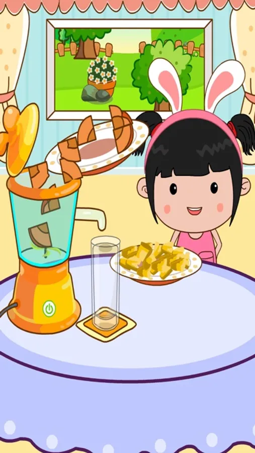 丫丫小朋友变成果汁达人,客人来了,榨一杯冰凉可口的果汁。