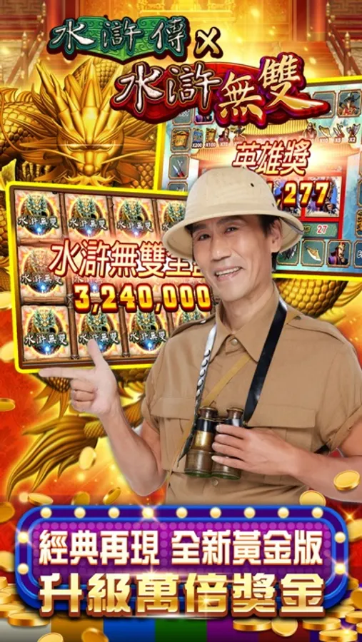 ●【水滸無雙】英雄好漢逗陣上梁山!原廠街機水滸傳黃金版,全盤無雙獎萬倍,再加碼小瑪莉,開獎開到你會怕!