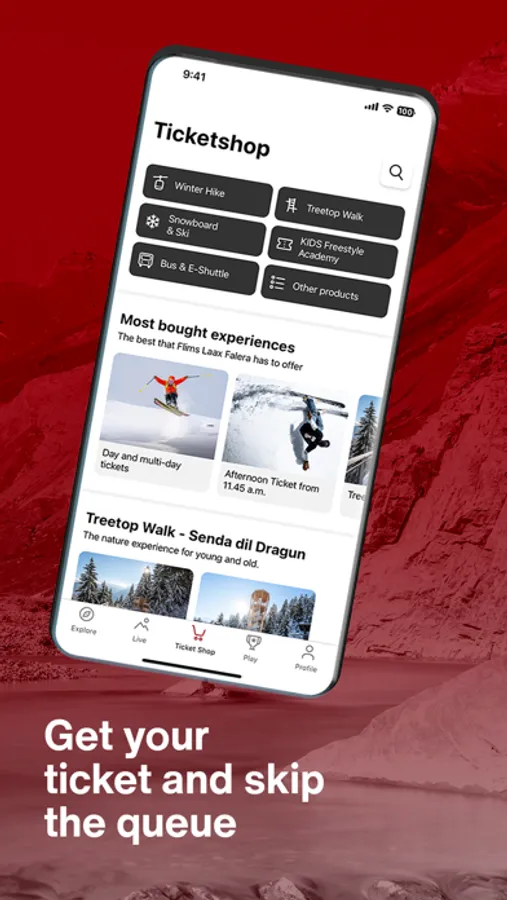Within EXPLORE you can find almost everything you need or want in LAAX, from the weather report to Q-alert webcams to your next delicious fondue. In addition, PLAY features new challenges and badges, the much-loved leaderboards and your personal statistics in one completely revamped, user-friendly view. This season, the SHOP is more versatile, personalized and appealing than ever, with new products ranging from tickets to merchandise. The SHOP also supports search, so if you can book it on the app, you can also search for it!