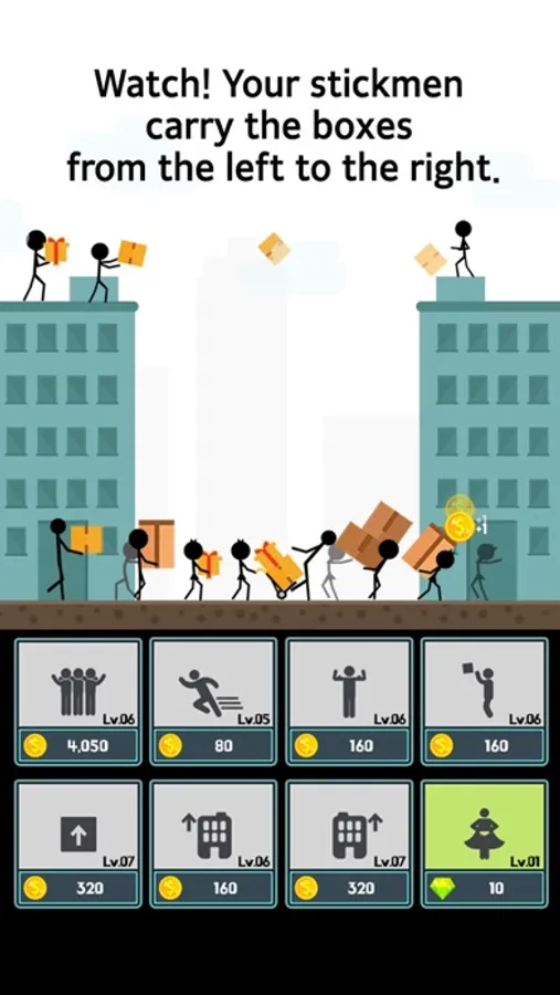Watch! Your stickmen can automatically carry the boxes from the left to the right.