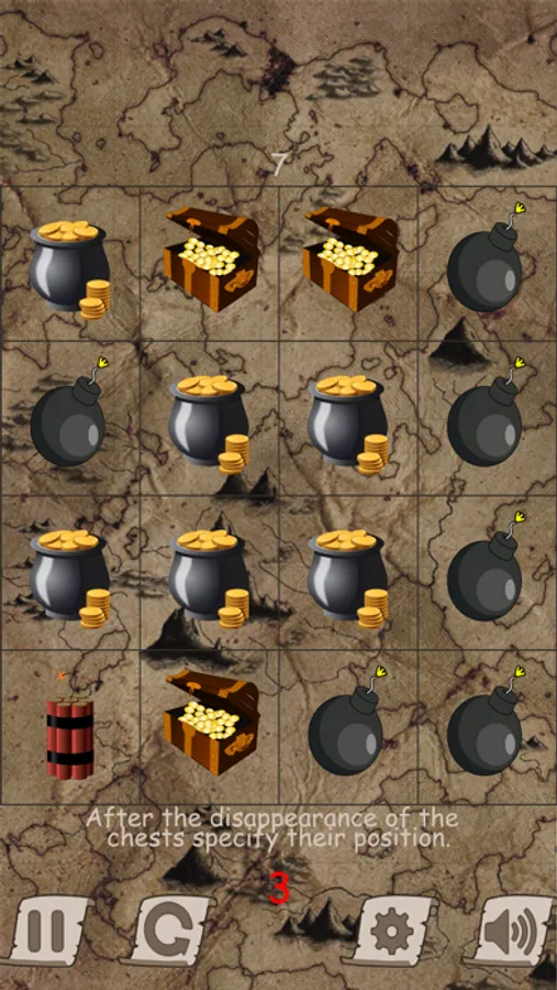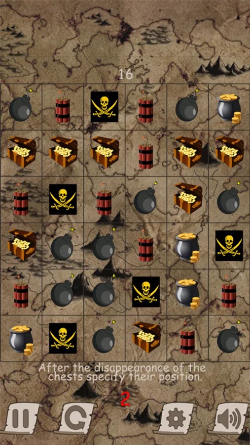 Pirates has hidden treasures on the beach. Remember their locations and find the treasures!